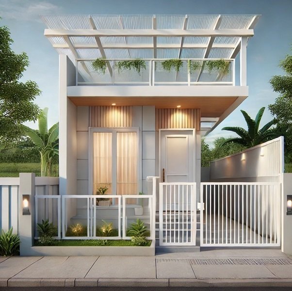 • Menjadi elemen estetika yang memperkuat tampilan fasad rumah.
